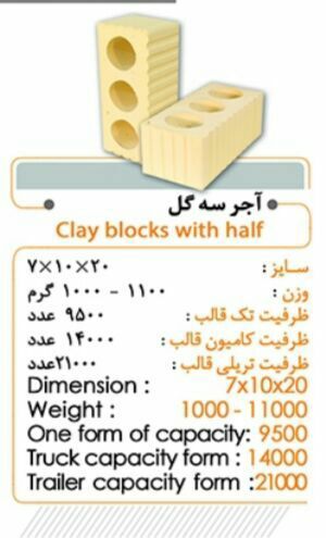 تعداد آجر در هر تن : حدود ۴۲۰ الی ۴۴۰ قالب
